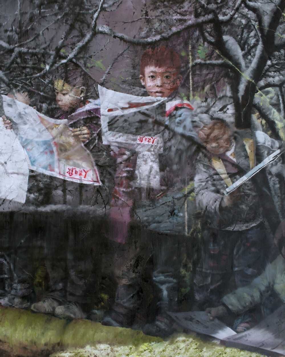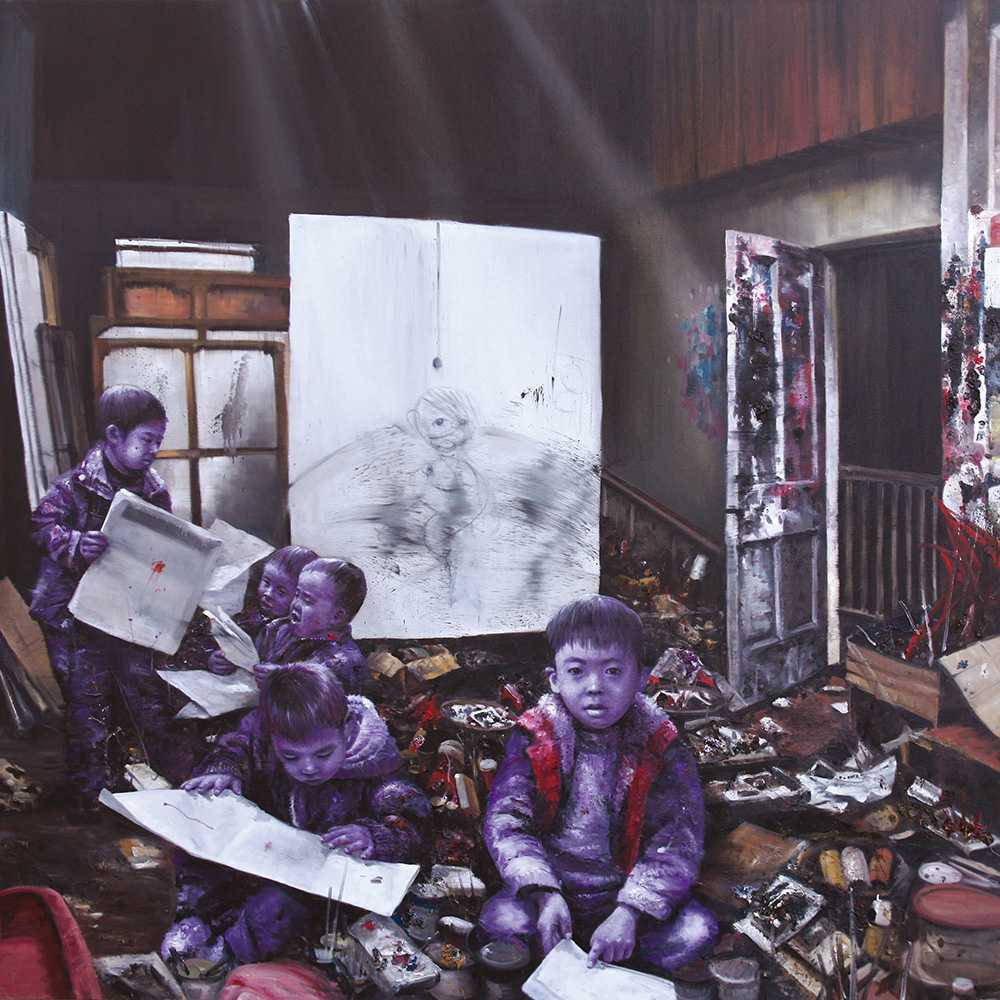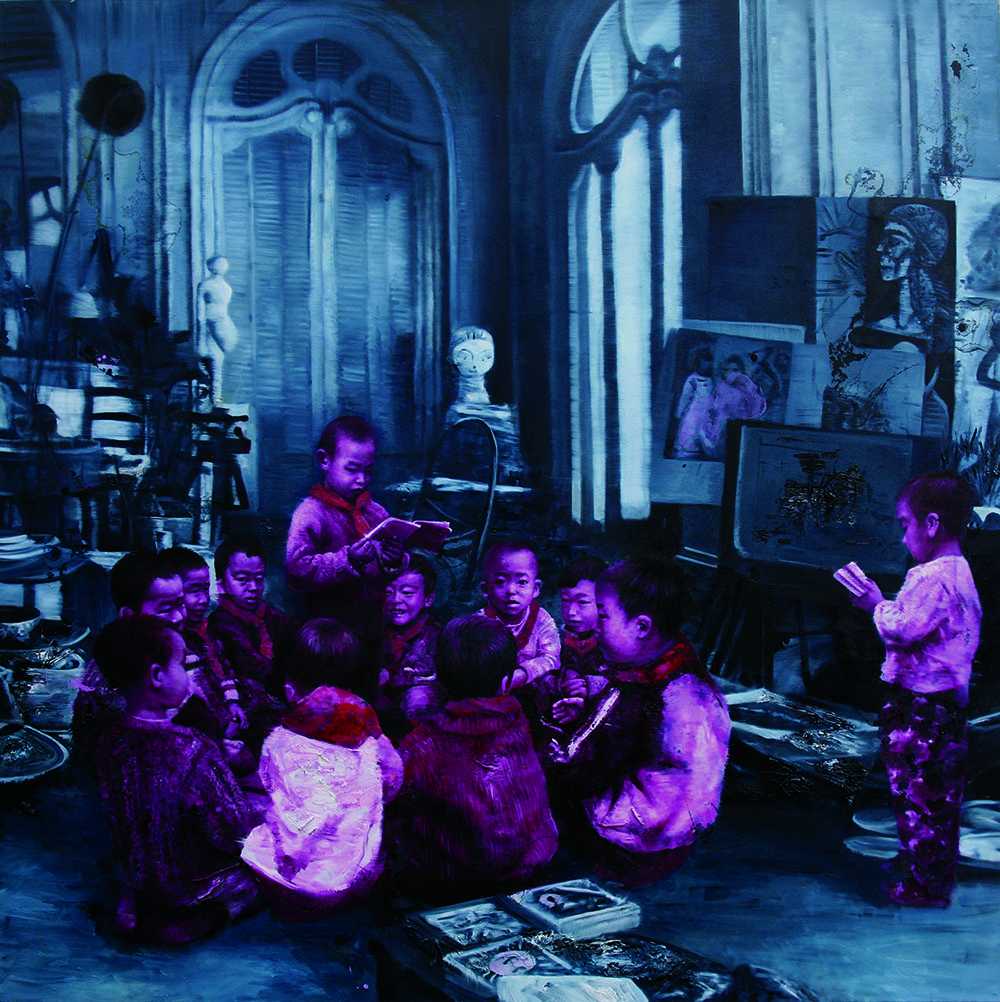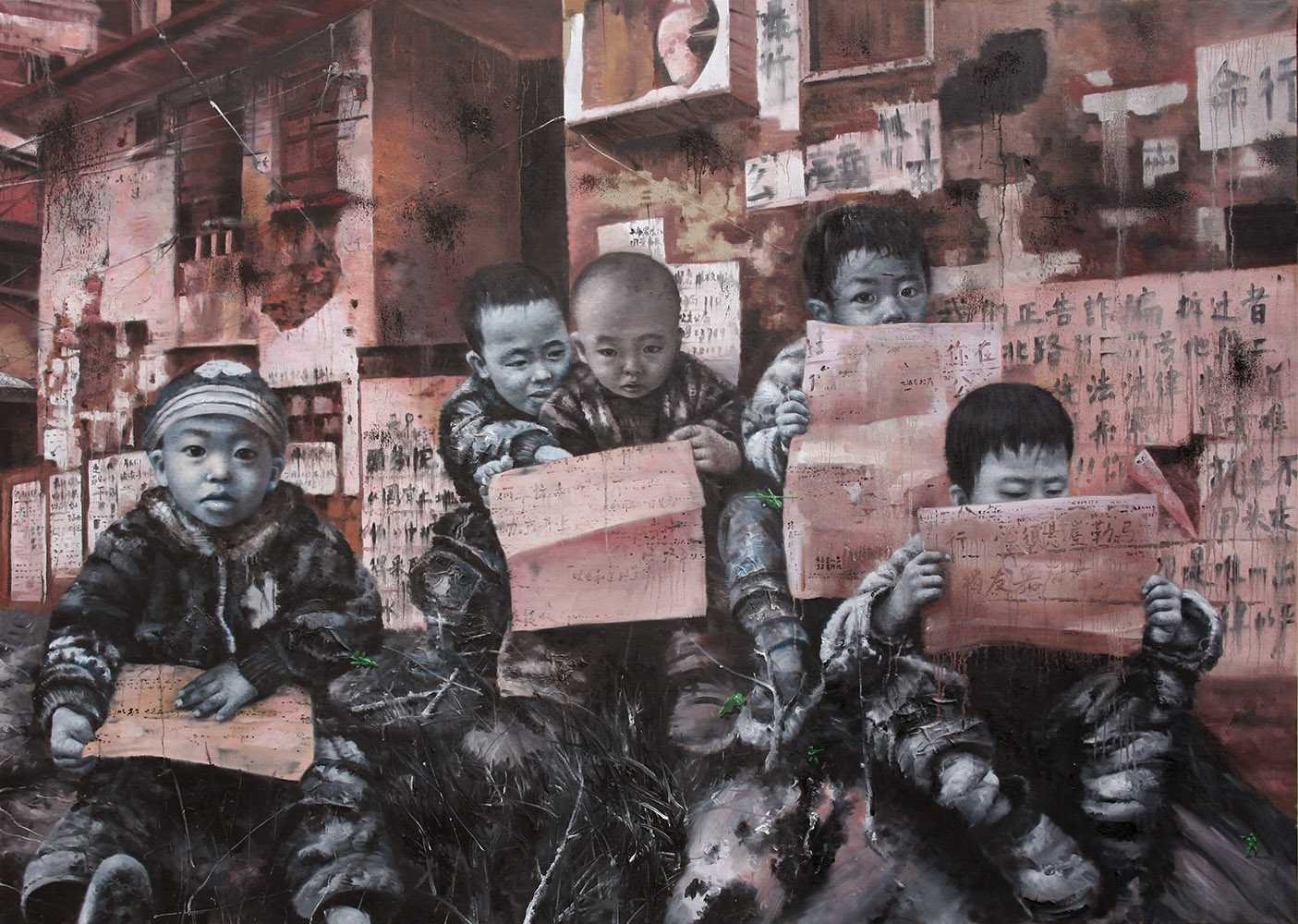 拆迁前的阅读, 2011, 布上油画, 180x250公分