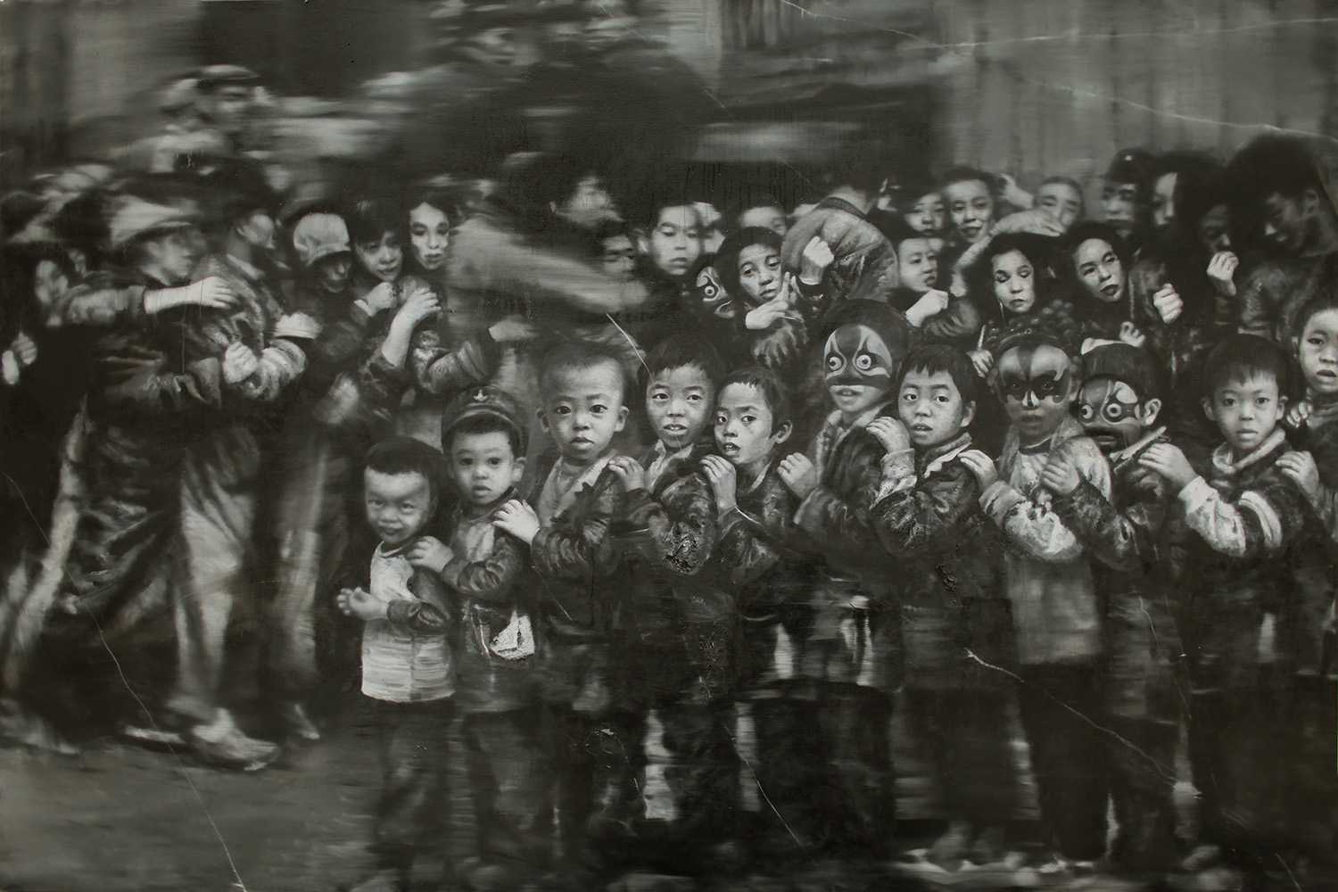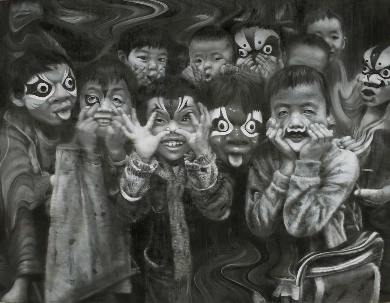 草台班和自画像, 2013, 布上油画, 198x160公分