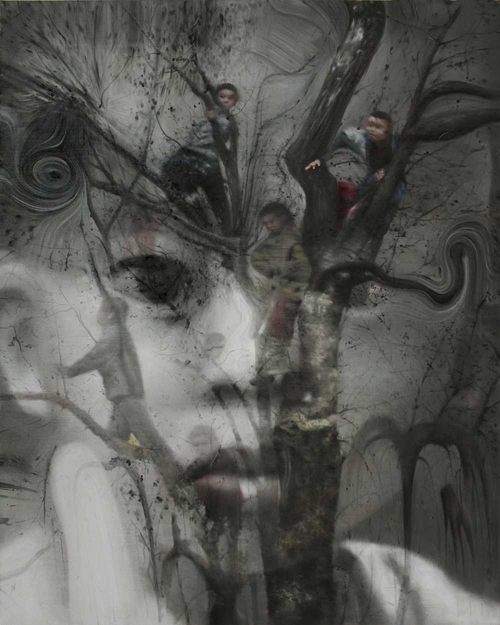 精神病院里的自画像, 2013, 布上油画, 158x198公分