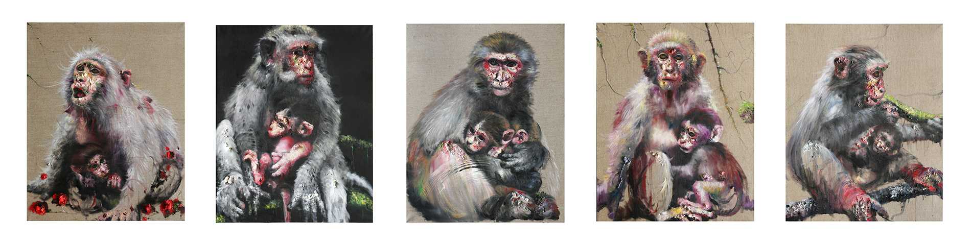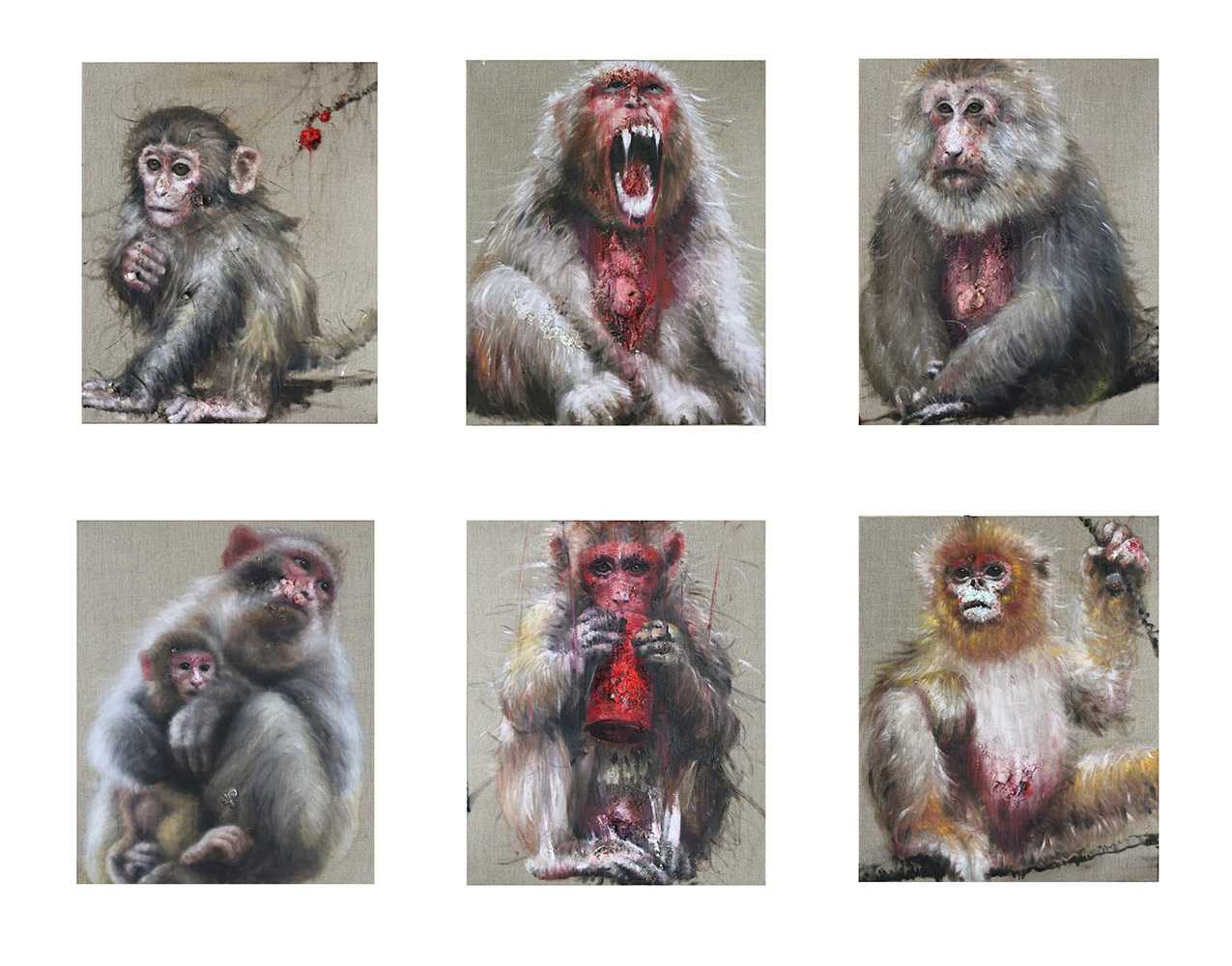 小猴群像第四部, 2014, 布上油画, 每件92x73公分