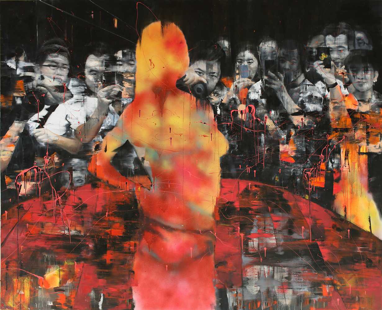夜幕下的三只猴, 2014, 布上油画, 160x200公分