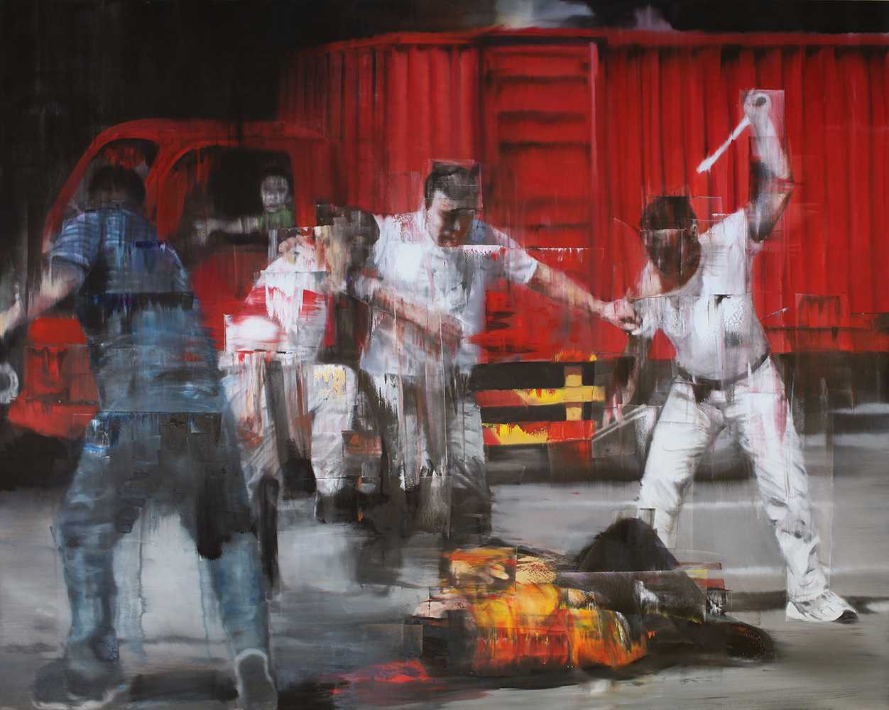 街头暴力, 2016, 布上油画, 62x78英寸