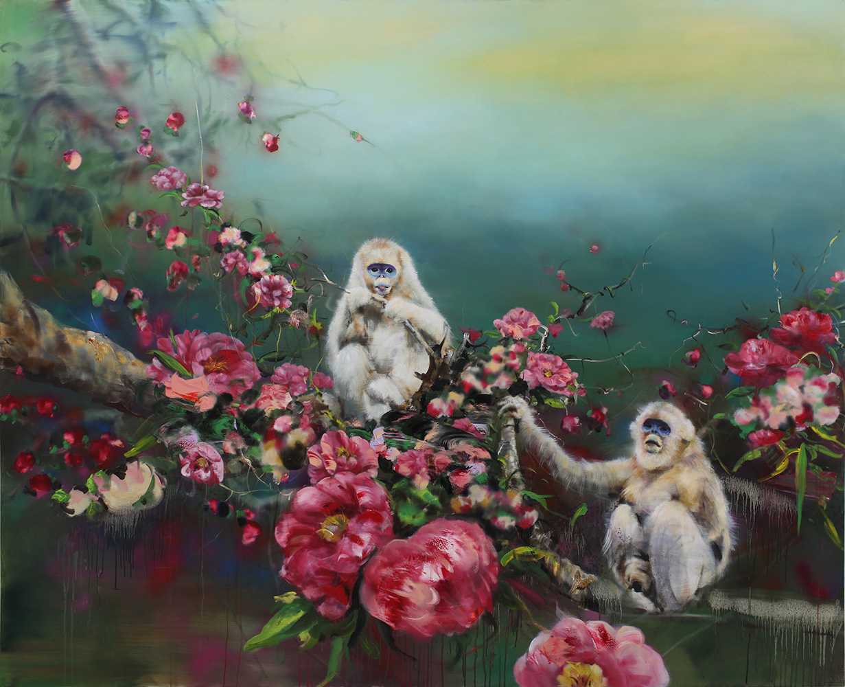 花海与白猴, 2019, 布上油画, 78x96英寸