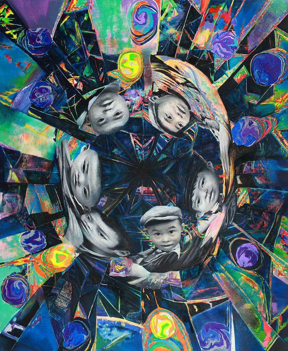 深蓝万花筒与六童, 2021, 布上油画, 78x64英寸