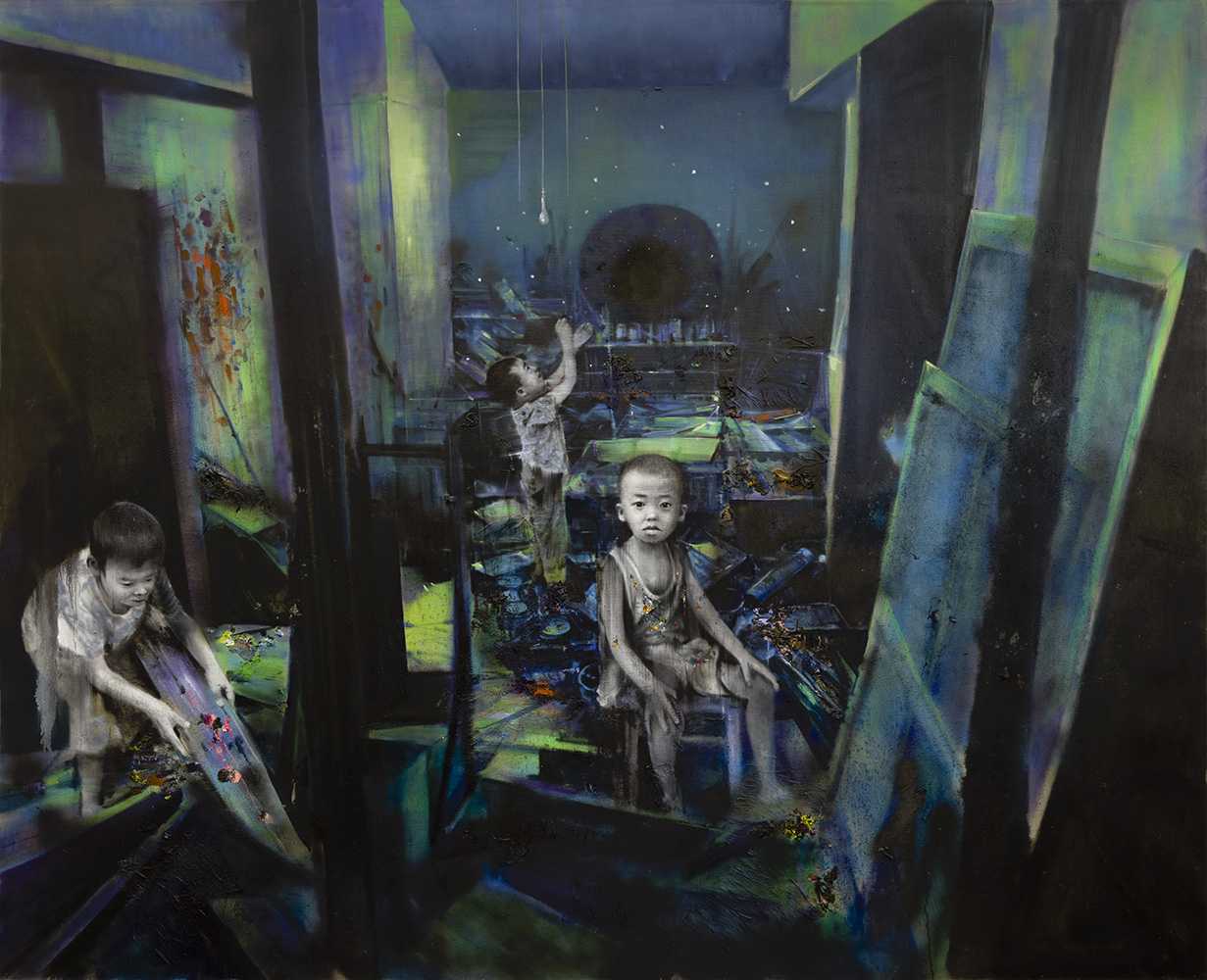 培根家里之夜, 2022, 布上油画, 78x64英寸