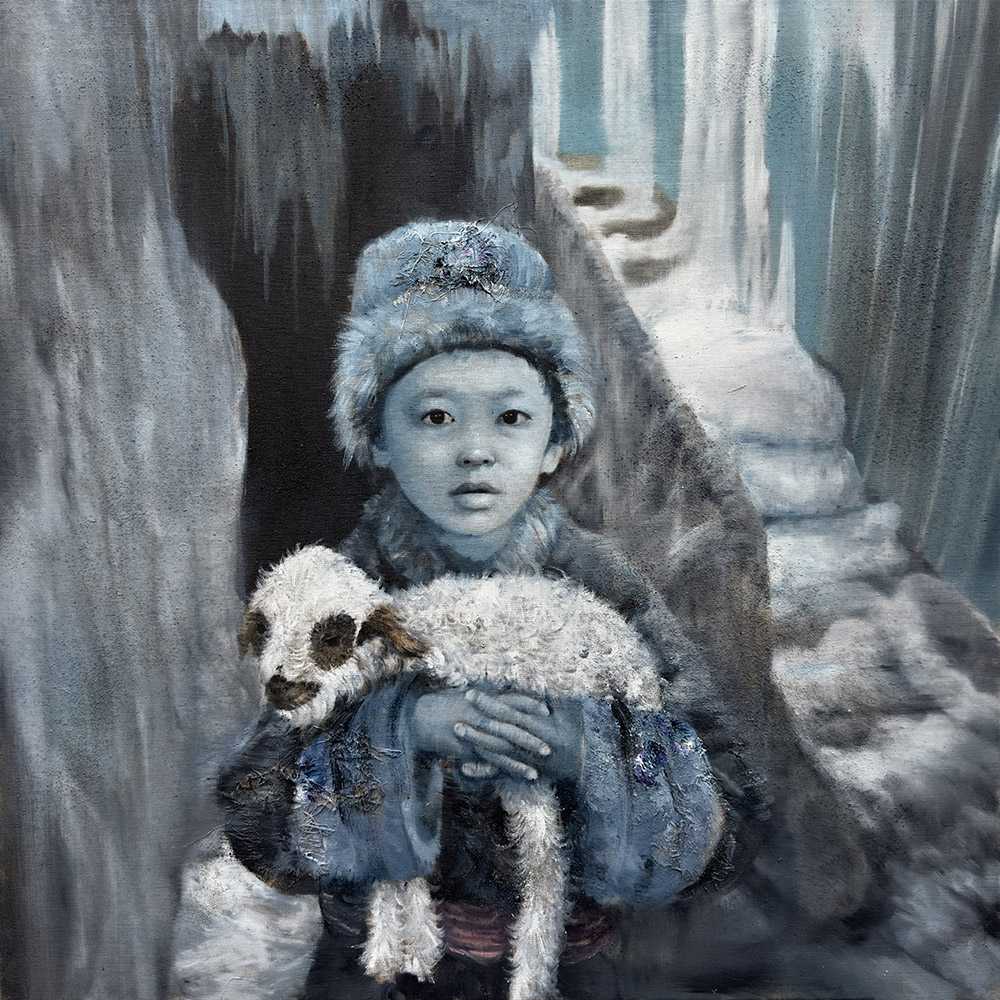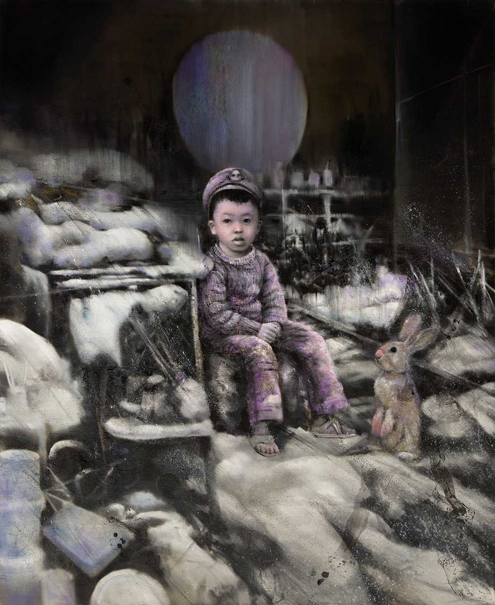 和兔子一起, 2023, 布上油画, 78x64 英寸
