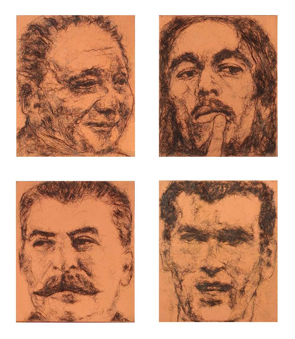 Icone #1-4, 2002, hair on canvas, each 55x46 cm