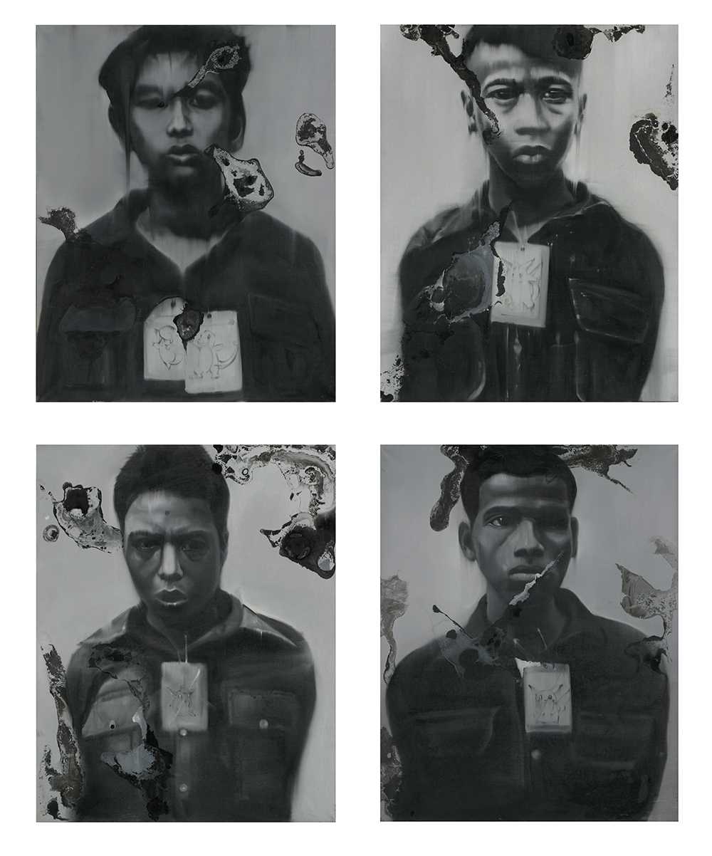 Victime #1-4, 2002, oil on canvas, each 92x73cm