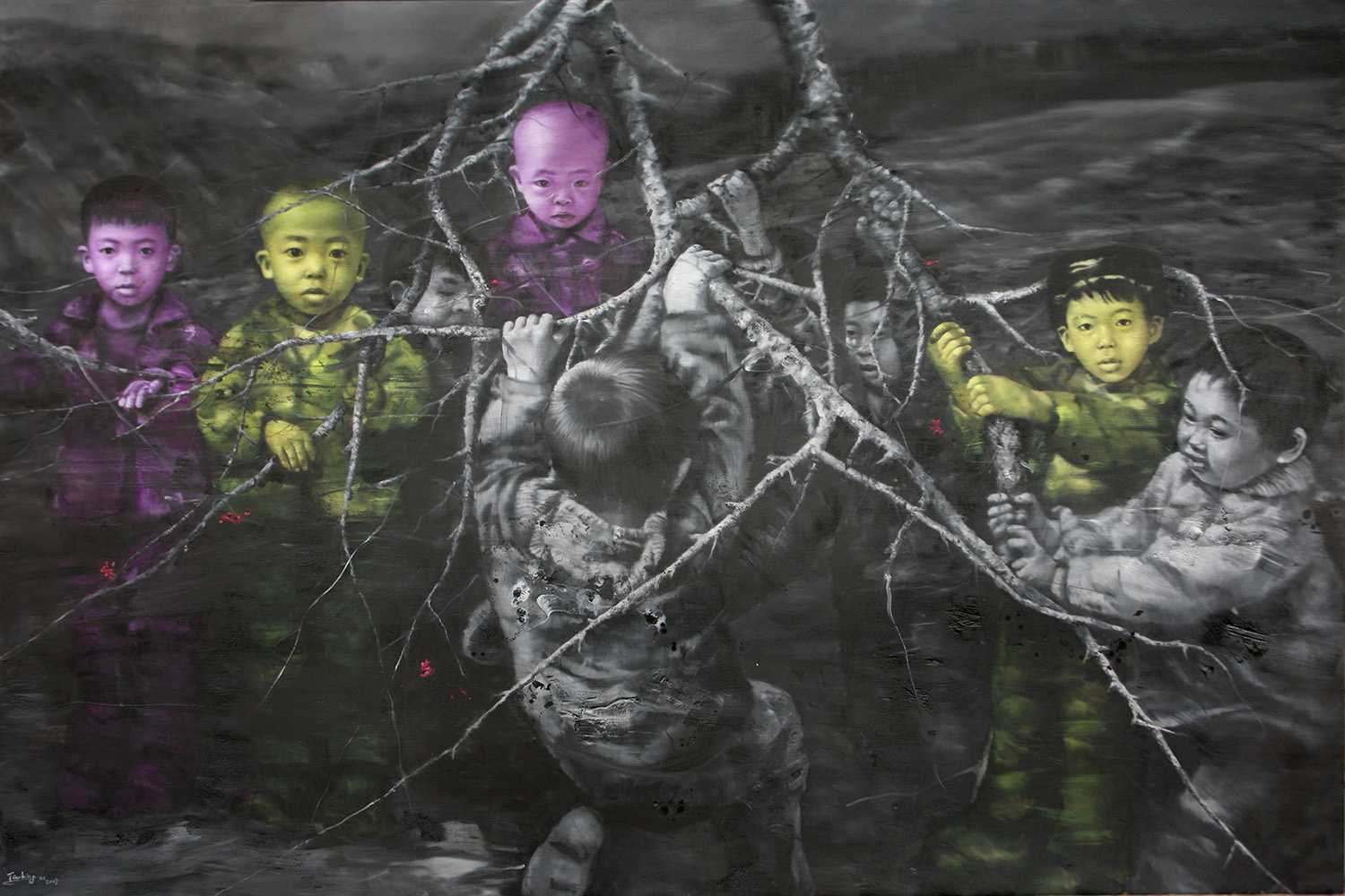 2008 - Me and my brother with the tree _2, 2008, oil on canvas, 200x300cm