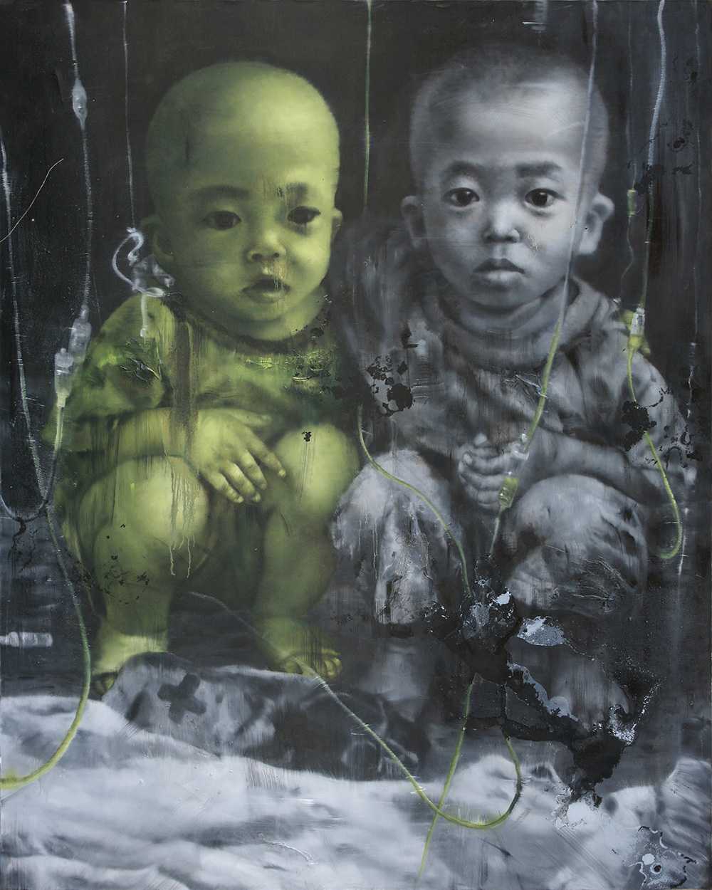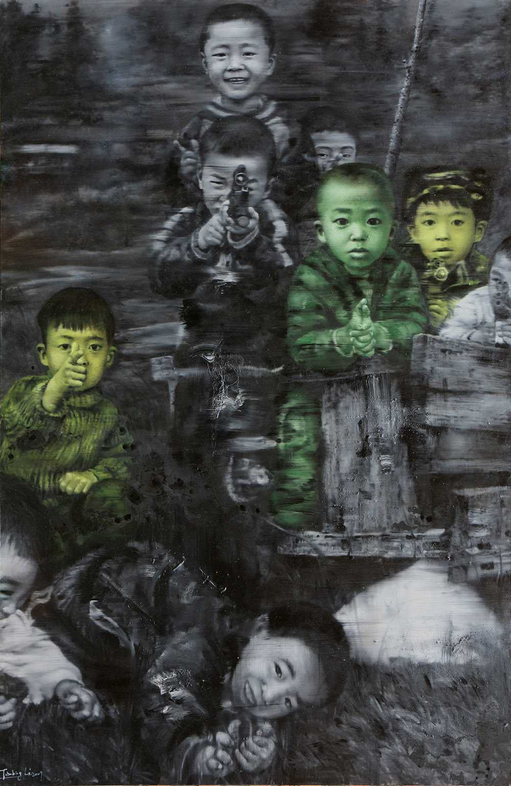 Bataille dans le champs, 2009, oil on canvas, 200x130cm