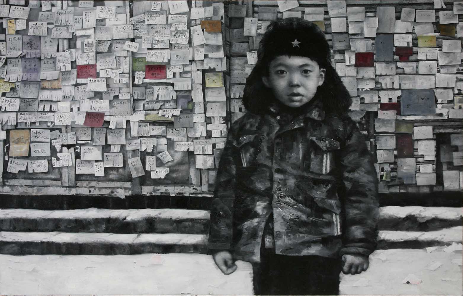 portrait in front of Bulletin Board, 2010, oil on canvas, 160x250cm