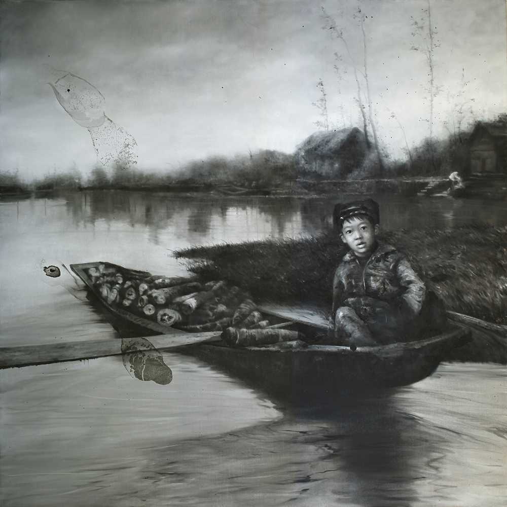 Alone on the boat, 2014, oil on canvas, 198x198cm