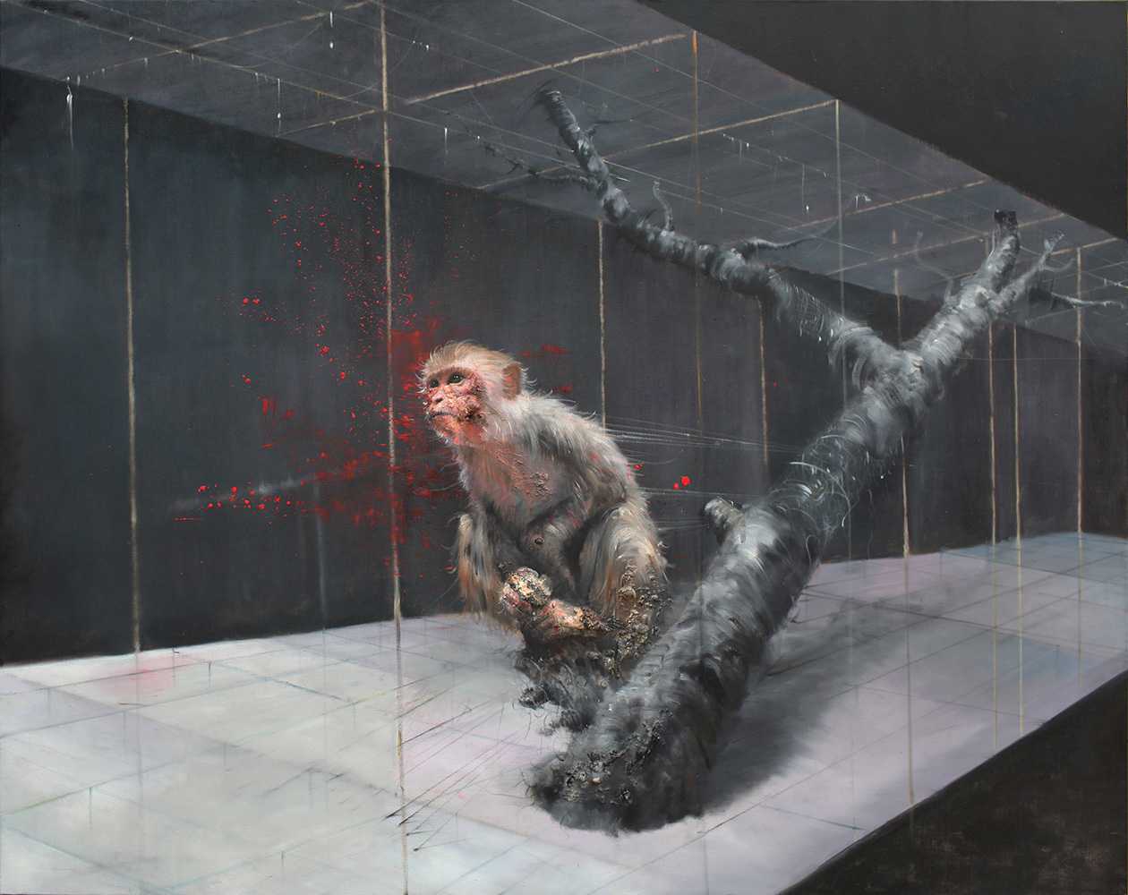 Monkey alone inside the space, 2014, oil on canvas, 157x198cm