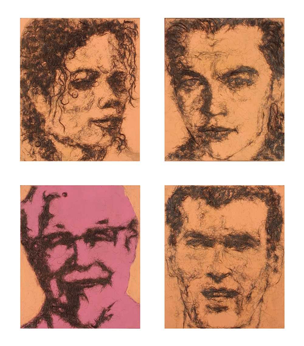 Icone #1-4, 2002, hair on canvas, each 55x46 cm