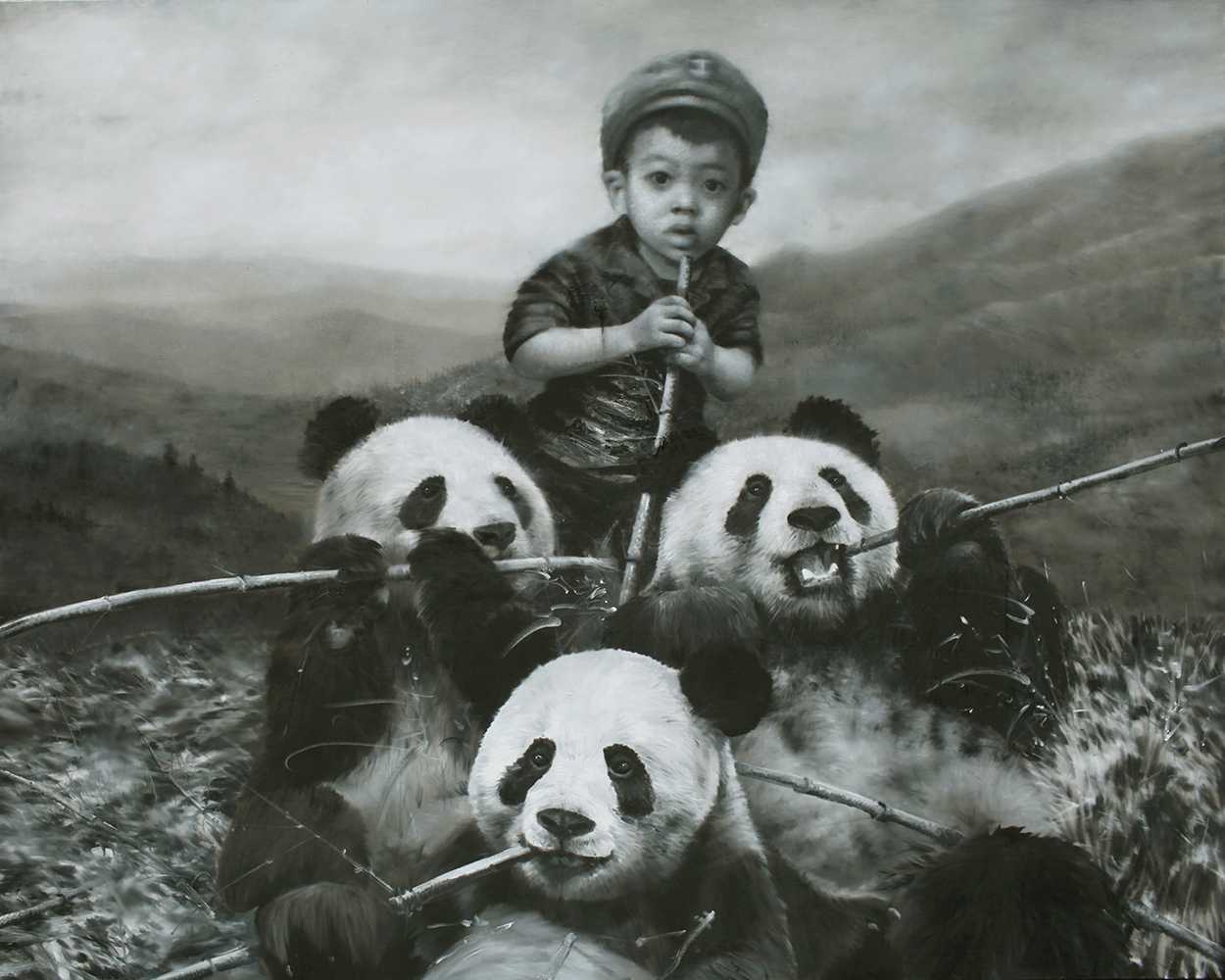Manger avec les pandas, 2012, oil on canvas, 200x250cm