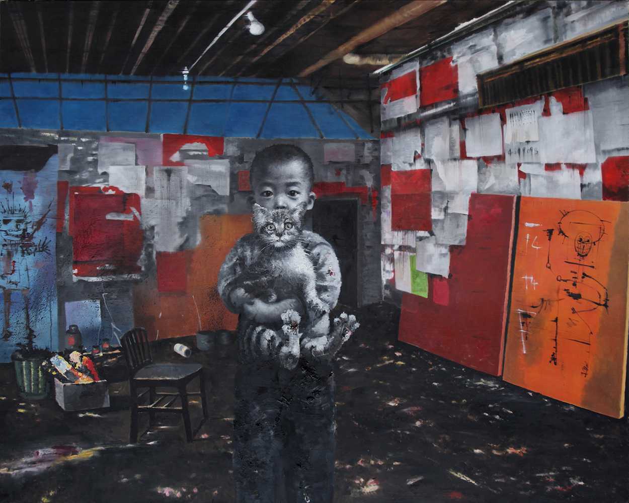 The cat in Basquiat's studio, 2012, oil on canvas, 200x250cm