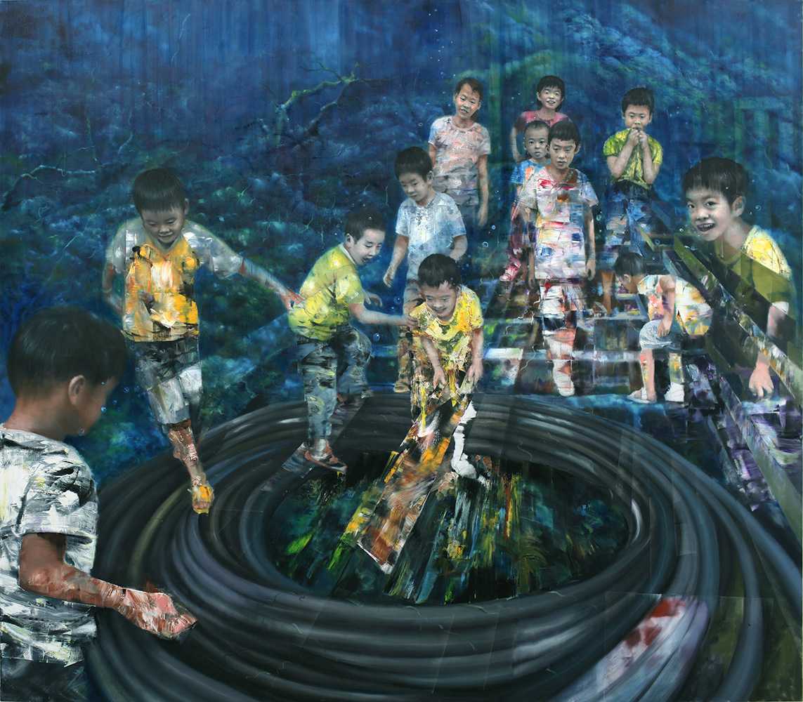 Catch the mice underwater, 2017, oil on canvas, 96x84 inches