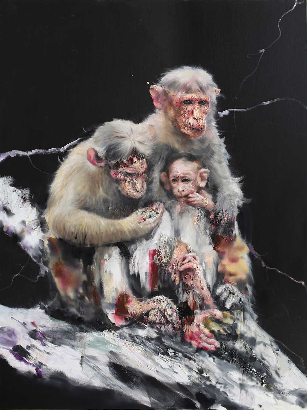 Monkey familly black #2, 2018, oil on canvas, 48x36 inches