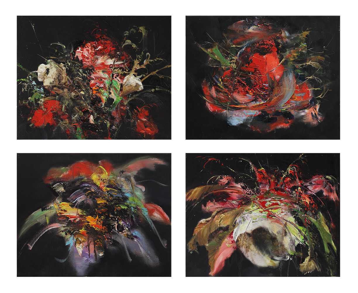Flower in black #1-4, 2020, oil on canvas, each 16x20 inches